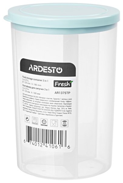 Контейнер для сыпучих ARDESTO Fresh 3в1, 3 х 0,75 л, тиффани (AR1375TP)