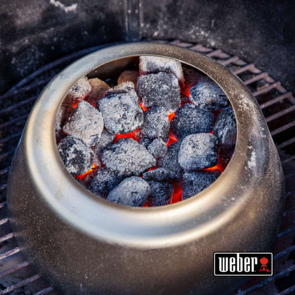 С помощью контроллера Weber для угольных грилей 57 см, вы сможете с легкостью настроить свой гриль для обжаривания как на высокой температуре, так и низком и медленном жаре. Контроллер состоит из конуса и кольца диффузора, что уменьшает потребность в догадках для менее опытных поваров и добавляет новый уровень мастерства для профессионалов в сфере грилинга. При использовании с угольными брикетами, конус позволяет готовить до 7 часов в режиме low-and-slow, тогда как кольцо диффузора обеспечивает равномерный нагрев по всей поверхности гриля, давая вам достаточно места для крупных продуктов, таких как ребра, свиные лопатки и т.д. Конус также можно использовать для создания чрезвычайно высокого уровня жара для жарки, а также для эффективного конвекционного тепла для идеально хрустящих крылышек, мяса и овощей.