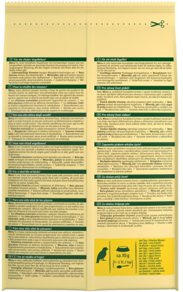| Состав | Злаки 91.8%, семена 5.9%, минералы, масла и жиры (рыбий жир 0.05%), овощи и овощные продукты, мед 0.02%, дрожжи (бета-глюканы 80мг/кг), кальций 0.80%, фосфор 0.40% |