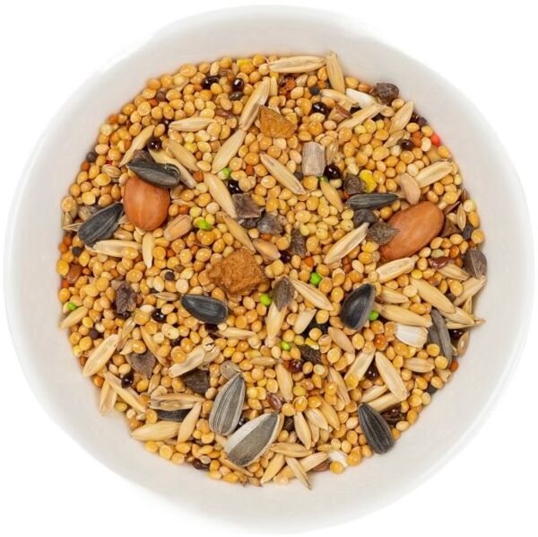 | Состав | Семена канареечника, семена льна, семена подсолнечника, чумиза, рапс, гречиха, сушеное яблоко, пшеница, арахис, просо черное, кэроб измельченный, просо желтое, просо красное, пшено, овес голозерный |