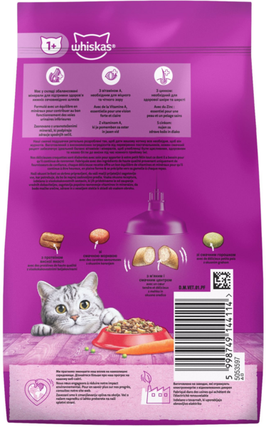 Аппетитный обед WHISKAS - это 100% сбалансированный рацион для здоровой и счастливой жизни Вашей кошки. Хрустящие подушечки с нежным паштетом внутри обязательно придутся по вкусу Вашей любимице. Кроме того, WHISKAS содержит все необходимое, чтобы еда Вашей кошки была не только вкусной, но и полезной.