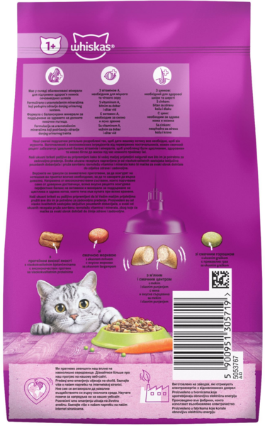 WHISKAS С ЯГНЕНКОМ. ПОЛНОРАЦИОННЫЙ СУХОЙ КОРМ ДЛЯ ВЗРОСЛЫХ КОШЕК