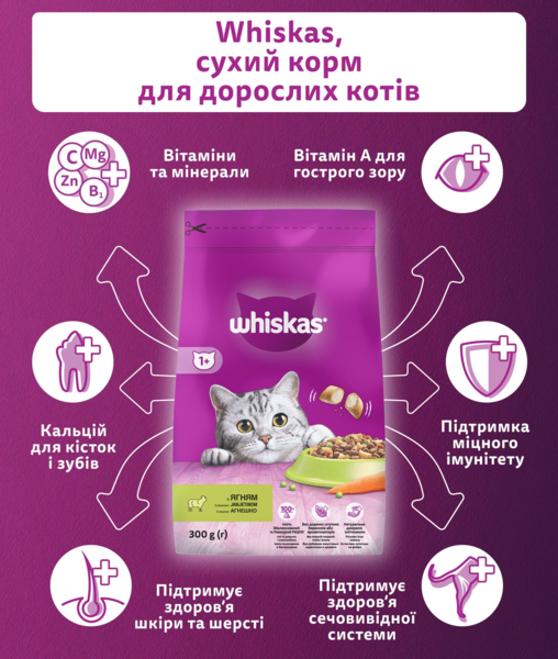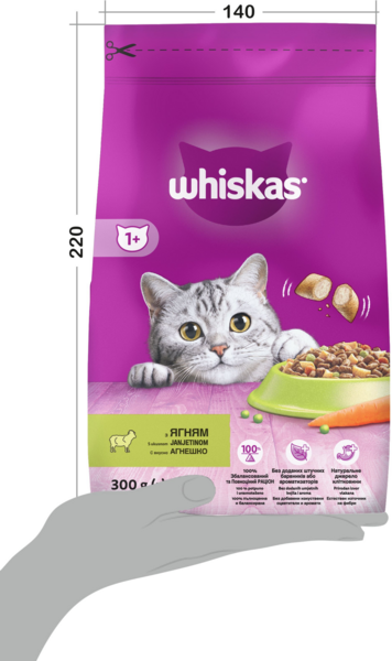 - Сухой корм для взрослых котов с ягненком Whiskas 300г