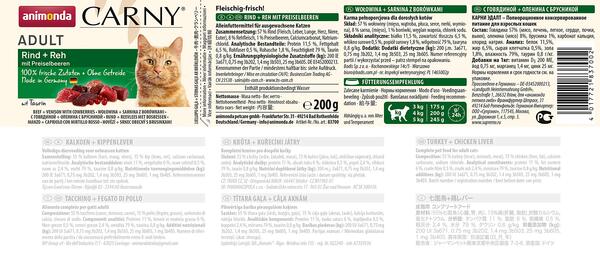 - Корм влажный для котов Carny с говядиной, олениной и брусникой 200 г