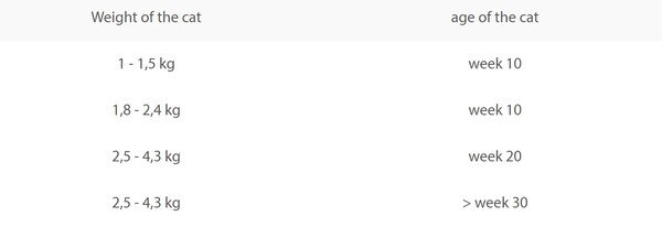 Котенку в возрасте 3 месяцев и весом 1,2 кг стоит ежедневно давать 165 г корма;