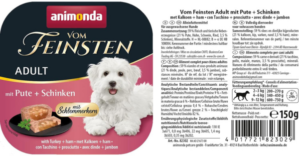 Корм влажный для собак Animonda Vom Feinsten gourme Adult with Turkey+Ham с индейкой и ветчиной, 150 г
