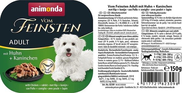 Vom Feinsten Adult с курицей + кролик в соусе: вкусный влажный корм для собак с нежными кусочками в соусе