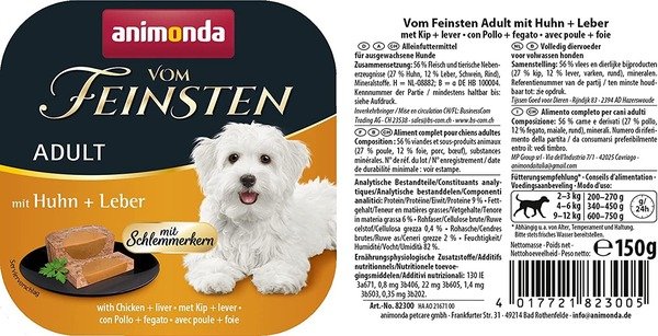 - Корм влажный для собак Vom Feinsten с курицей и печенью 150 г