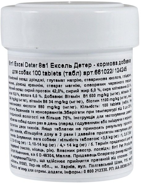 - Кормовая добавка для собак 8in1 Excel Deter таблетки 100шт