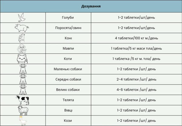 Таблетки дают с руки или в измельченном виде с кормом. Добавку можно применять кратковременно, в течение 5-10 дней (в этом случае дозировку удваивают) или непрерывно. Рисков передозировки таблетками нет.