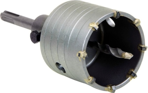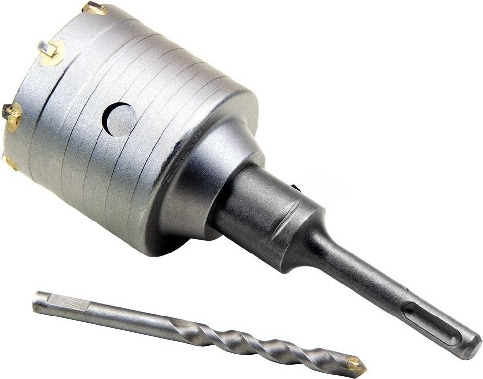 Коронка Tolsen 75891 предназначена для сверления отверстий большого диаметра в бетоне. Диаметр 65 мм позволяет создавать отверстия для монтажа труб, электропроводки, подрозетников и других коммуникаций. Коронка оснащена 8 твердосплавными (ТВС) зубцами (победитовыми напайками), которые обеспечивают эффективное и быстрое сверление прочных материалов, а также минимизируют износ. Центрирующее сверло обеспечивает точное позиционирование в начале работы. Имеет систему крепления SDS-Plus, что позволяет легко и надежно подключать ее к перфораторам в режиме ударного сверления.