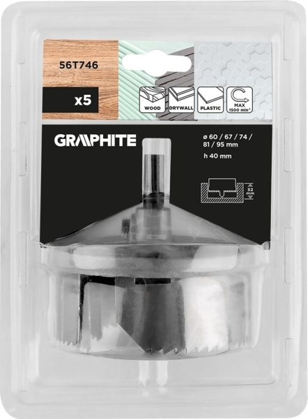 Набор коронок Graphite - удобный комплект для быстрого вырезания больших отверстий в древесине и древесных материалах. Подойдет для столярных и монтажных работ: установки фурнитуры, протягивания кабелей, подготовки технологических отверстий в фанере, ДСП или МДФ. Благодаря подборке популярных диаметров легко подобрать оптимальный размер под конкретную задачу и получить аккуратный результат без лишних подборов оснастки.