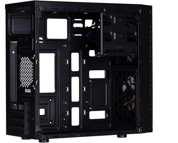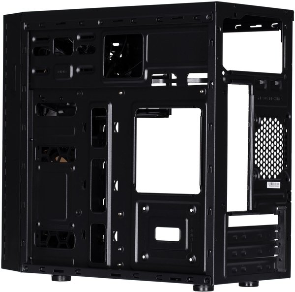 В корпусе предусмотрено пространство для аккуратного размещения кабелей, можно установить до 3 вентиляторов (дополнительно 1х80(90) мм на задней панели), охлаждение для процессора высотой не более 142 мм. Для подключения, управления и контроля за компьютерной периферией в арсенале корпуса есть разъемы 2xUSB 3.0, HD AUDIO+MIC, кнопки и индикаторы Power, Reset, Power LED, HDD LED. Корпус с верхним расположением блока питания (нет в комплекте). В комплектацию модели включены инструкция и набор крепежных элементов.