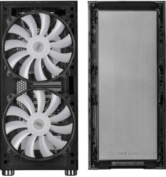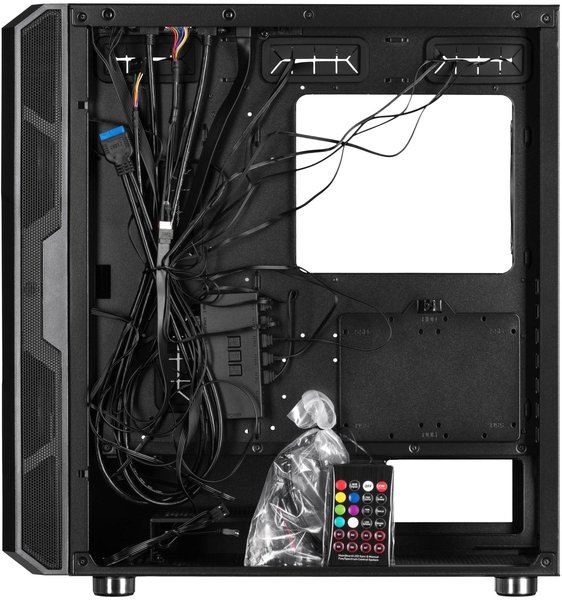 ARGB подсветку легко менять одним касанием (кнопкой на панели). Встроены два 200 мм ARGB вентиляторы на передней и один 120 мм ARGB вентилятор на задней панели.