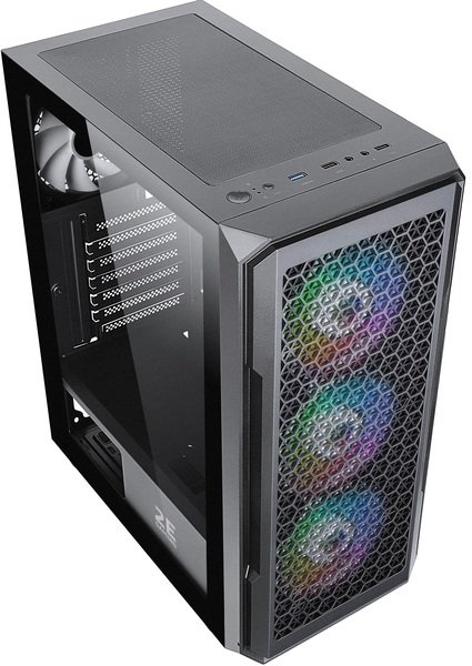 Для подключения, управления и контроля за компьютерной периферией и подсветкой, в арсенале корпуса есть разъемы 1xUSB 3.0,2xUSB 2.0 HD AUDIO+MIC, кнопки и индикаторы Power, Reset, Power LED, HDD LED,дополнительно ARGB концентратор с возможностью подключения к материнской плате.