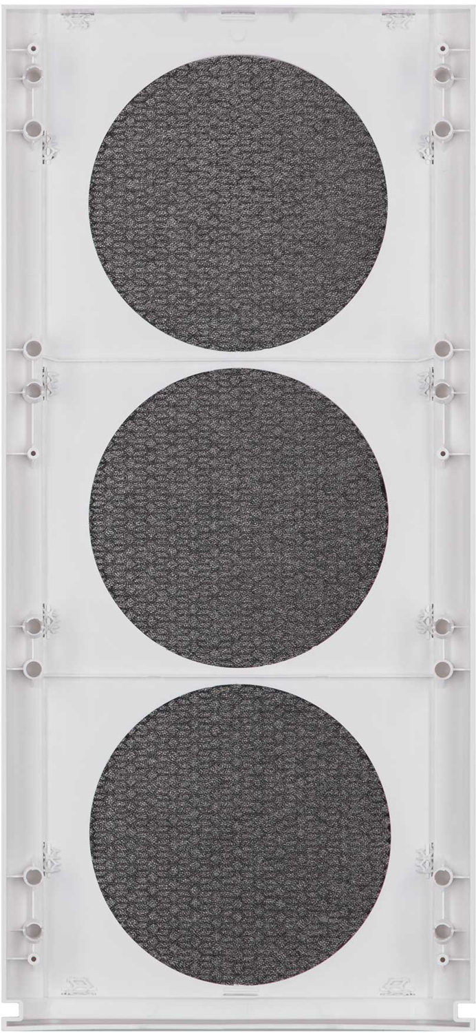 Передняя панель — металлическая сетка, способствующая активной циркуляции воздуха извне. Встроенные вентиляторы работают на вдув и на выдув. Активная циркуляция и отток нагреваемого воздуха за счет перфорированных элементов конструкции.