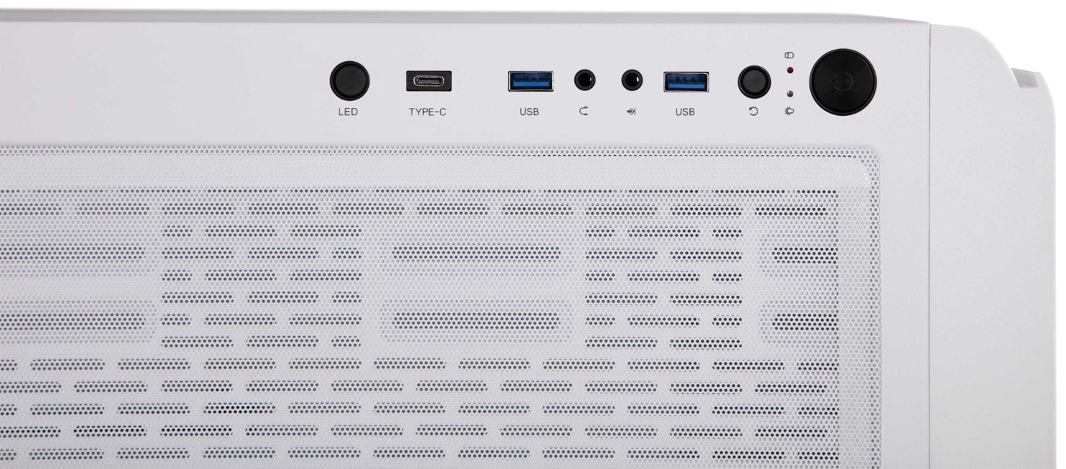 Современные разъемы 1 × USB Type-C, 2 × USB 3.0, HD AUDIO + MIC и 7 + 2 слотов расширения. Защита от пыли и загрязнения компонентов системы: магнитный пылевой фильтр на верхней панели и пылевой фильтр на нижней панели. Ножки украшены резиновыми вставками. Корпус не вибрирует на поверхности и хорошо фиксируется.