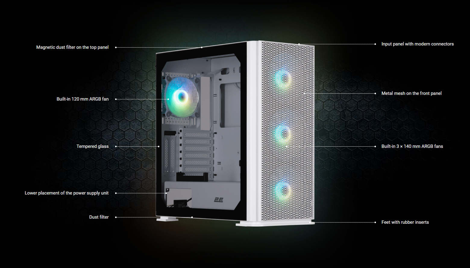 Корпус 2E Gaming Vertex GI01W, без БП (2E-GI01W)