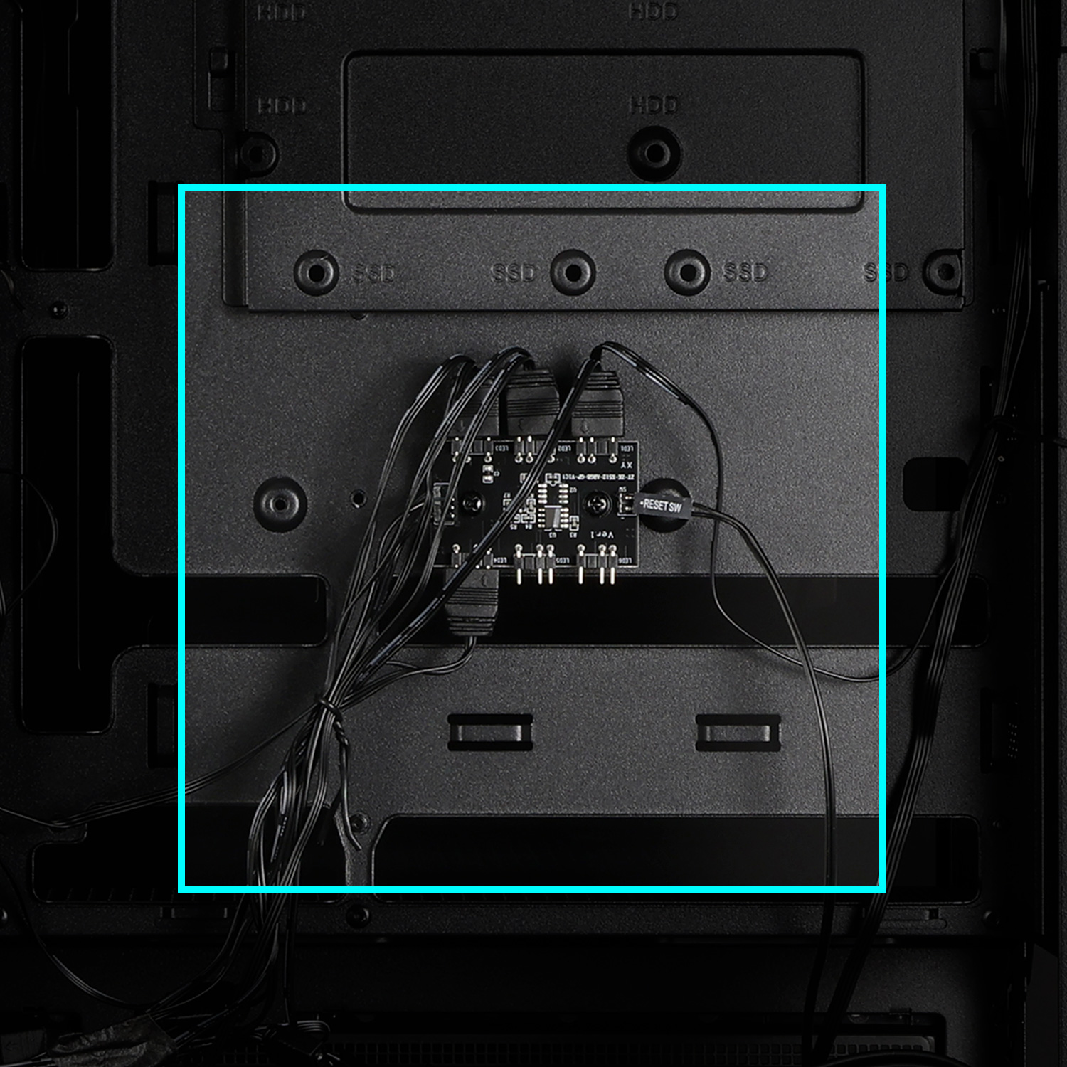 Контроллер и кнопка управления на передней панели обеспечивают разнообразные эффекты. Подключите к материнской плате 5V RGB коннектор для создания различных режимов RGB.