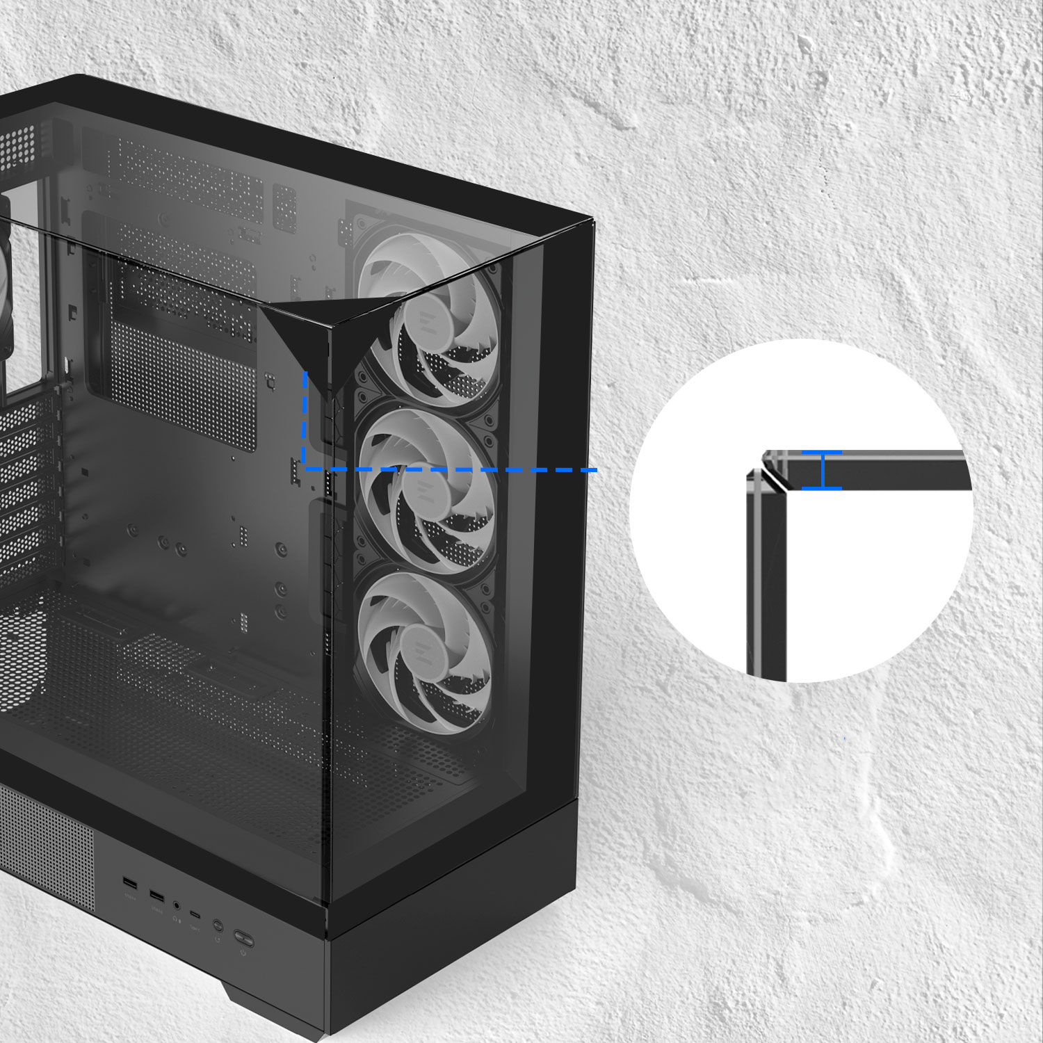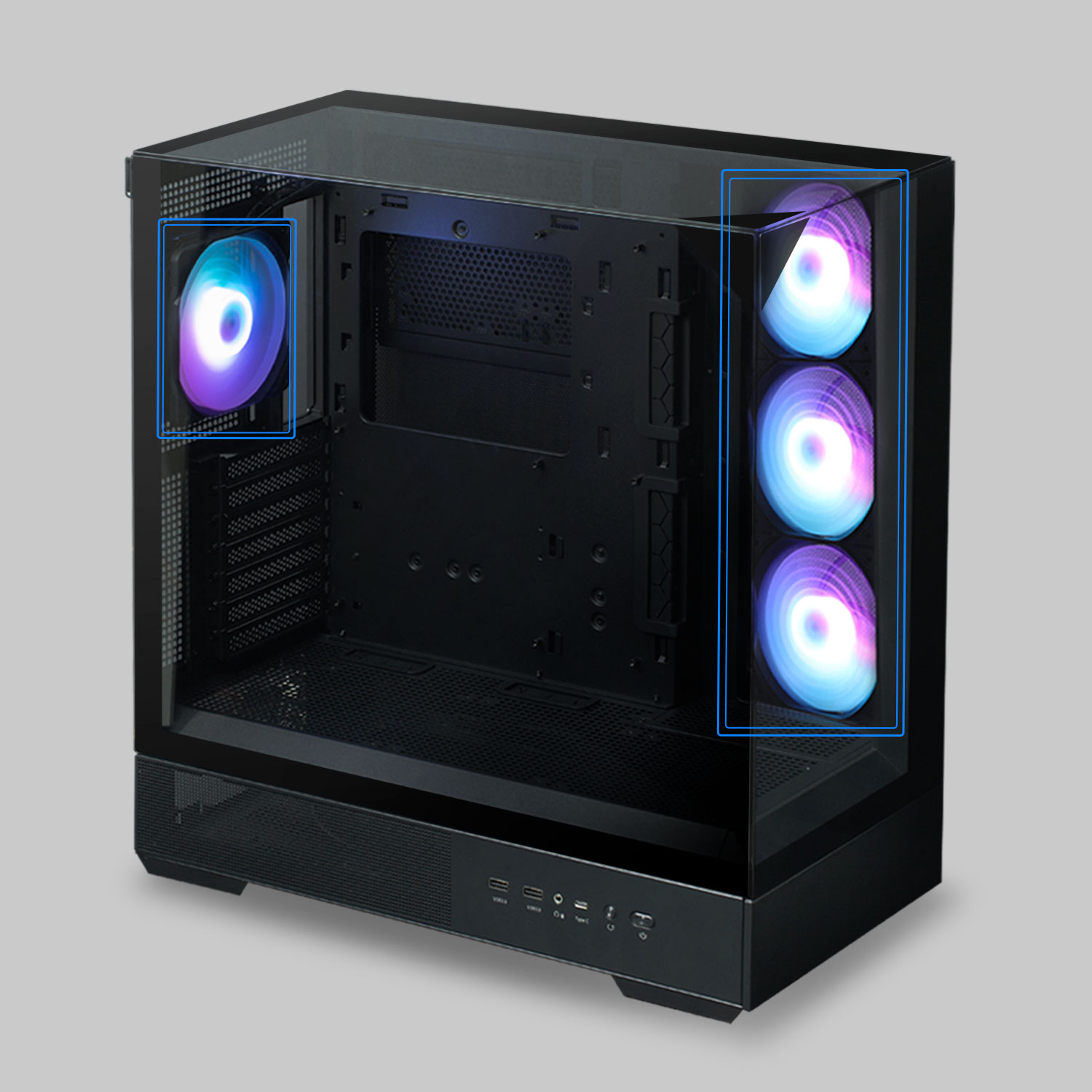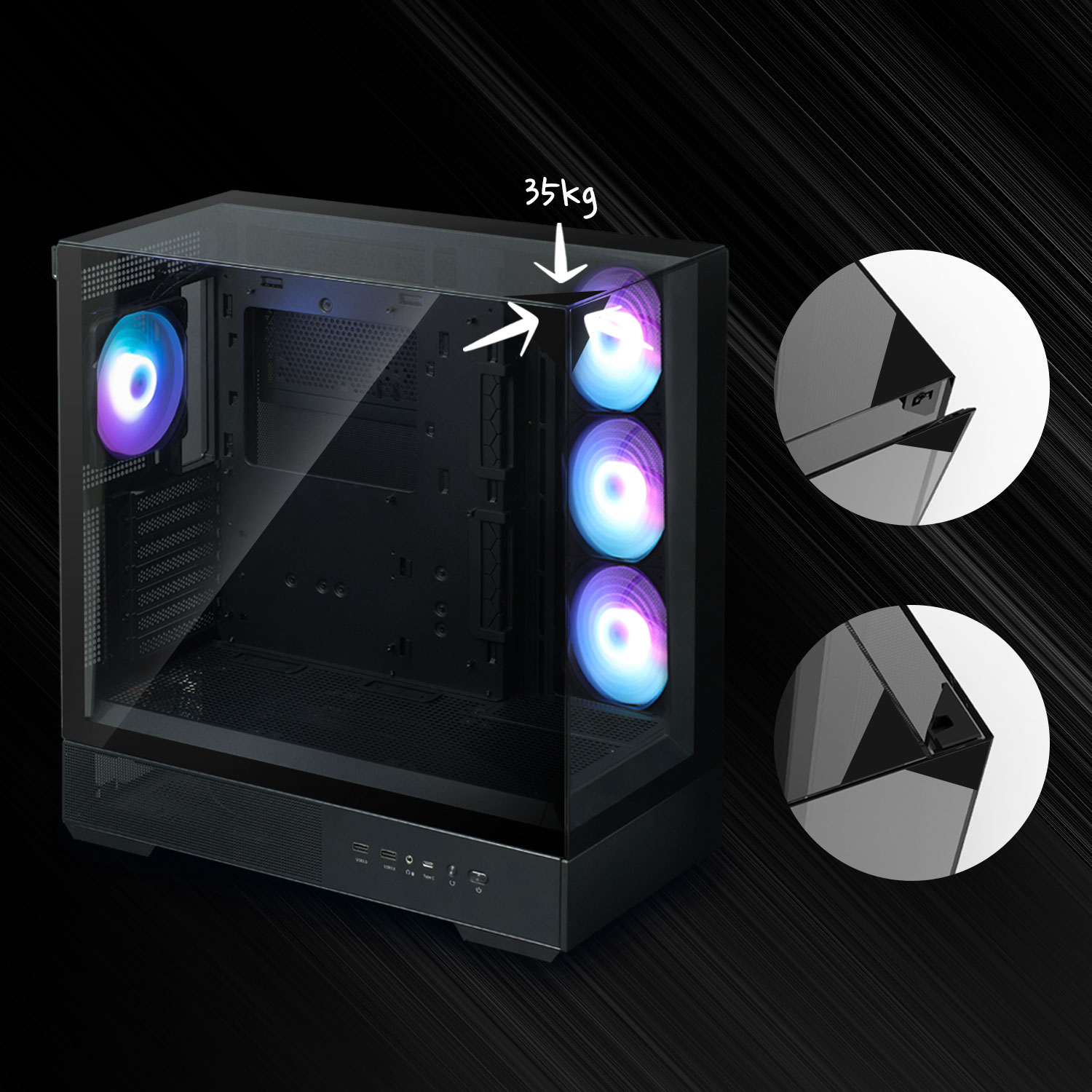 P40 Prism PLUS с тремя панелями из закаленного стекла создает ощущение свободы и улучшает вашу сборку благодаря современному дизайну.