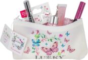 Подрастая, девочки обзаводятся собственным запасом косметических средств и оптимально, если эти средства будут из специальной детской линейки, чтобы не вредить нежной коже и здоровью, как заботится об этом американский бренд Lukky. Для того, чтобы хранить все свои сокровища в порядке и в любой момент найти нужное средство, вашей девочке понадобится красивая косметичка. Только посмотрите на эту нежную белую косметичку, украшенную орнаментом из цветов и бабочек. Она вместительная и практичная, а ее дизайн не оставит равнодушной ни одну модницу!