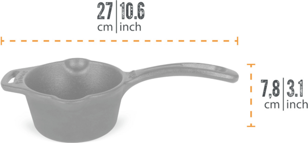 Литой чугунный ковш объемом 0,5 л от немецкого бренда Petromax. Незаменим для приготовления экстраординарных подлив и заправок на открытом огне. Золотистый карамелизированный лук, густой бешамель или велете на основе бульона он обогатит секретным ингредиентом - тонким ароматом копчения, который придает только чугунная посуда.