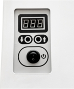 Электронный термостат котла обеспечивает плавную регулировку и поддержание температуры теплоносителя с высокой точностью и обеспечивает снижение энергопотребления. Три степени мощности нагрева. Возможность подключения комнатного термостата, программатора.