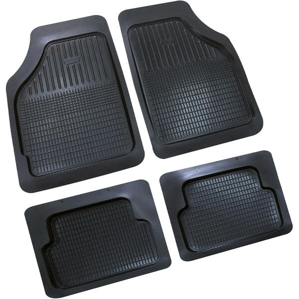 Комплект всесезонных автомобильных универсальных ковриков идеально подходят для автомобилей, грузовиков и внедорожников. Изготовлены из высококачественного ПВХ с нижним слоем нескользящего покрытия. Прочные и легко очищаются, просто промойте мыльной водой. Размеры: передние (48,5 х 74 см), задние (49 х 48,5 см)