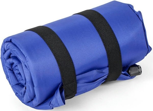 В качестве наполнителя используется дышащий полиэстер. Такой материал по свойствам напоминает губку: благодаря открытым порам он способен сжиматься в несколько раз. Поэтому коврик приобретает компактные размеры и удобен для транспортировки. Изделие комплектуется защитным пластиковым клапаном и удобным чехлом.