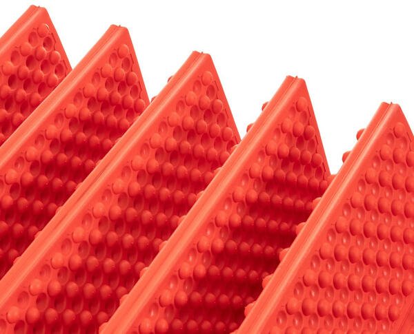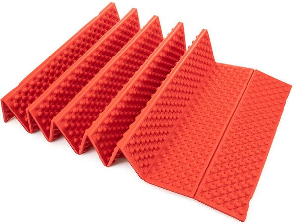 Коврик очень компактно складывается "гармошкой". В сложенном виде можно использовать в качестве "сидушки". За счет конструкции гармошка коврик удобно использовать на различном неровном рельефе - например, если вы хотите сесть облокотившись спиной на холодный камень или влажное дерево - с ковриком этой конструкции это будет сделать значительно проще и удобнее чем с классическим "листовым" кариматом, который надо постоянно "прижимать" и "контролировать", чтобы не выскользнул.