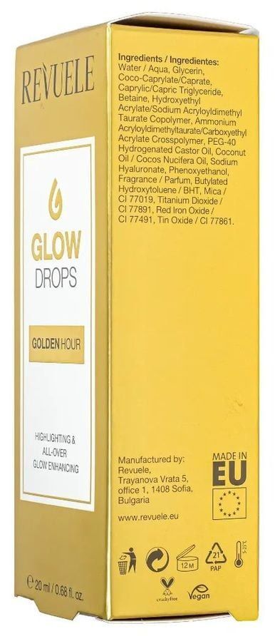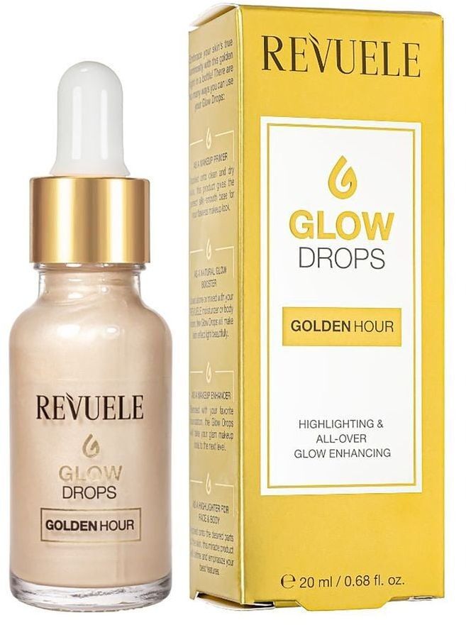 Капли для сияния лица Revuele — совершенная альтернатива классическому хайлайтеру, подходящая для самостоятельного и комбинированного использования. Glow Drops — это сверхлегкая консистенция, пропитанная пигментом жемчуга. Переливаясь на солнце невероятным мерцанием, средство маскирует имеющиеся недостатки, выравнивает тон и визуально разглаживает рельеф эпидермиса. Бьюти-продукт оказывает мощное увлажняющее действие благодаря содержанию специальных ухаживающих компонентов.