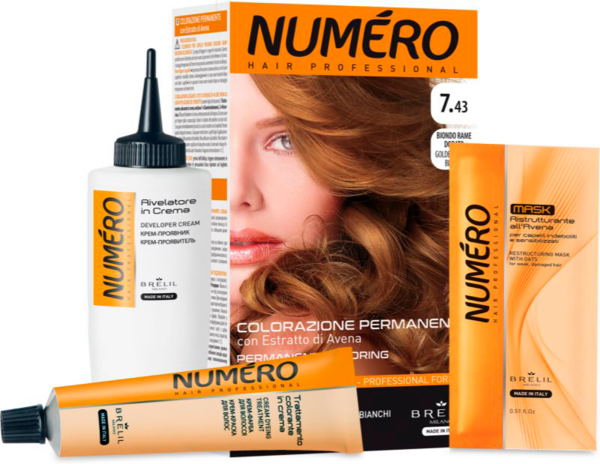 Похожие товары Краска для волос Brelil Numero 7.43 Golden copper blonde Медно-золотистый блонд 140мл