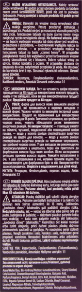 | Состав проявителя | Aqua, Hydrogen Peroxide, Cetearyl Alcohol, Sodium Lauryl Sulfate, Salicylic Acid, Disodium Phosphate, Phosphoric Acid, Simethicone, Etidronic Acid, Sorbitan Stearate, PEG-40 Stearate, Cellulose Gum, Potassium Sorbate, Sorbic Acid |