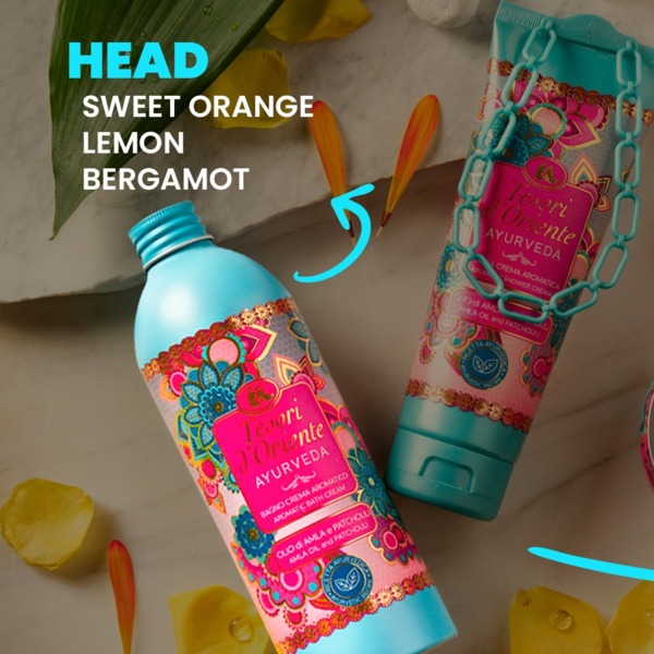 Крем-гель для душа Tesori d'Oriente, вдохновленный учением Аюрведы, создан для восстановления настоящей внутренней гармонии. Средство обогащено пятью традиционными аюрведическими ингредиентами (масло амлы, нима, кунжута, алоэ вера и календула). Они известны увлажняющим и питательным действием. Из-за этих свойств крем-гель очищает кожу чрезвычайно мягко. Аромат очищающего средства сочетает восхитительное благоухание пачулей с нотами цитрусовых, специй, цветочно-древесных и амбровых аккордов. Продукт не содержит парабенов, химических красителей и минеральных масел. Крем-гель Ayurveda придаст водным процедурам роскошного удовольствия, а телу - изысканного и чувственного аромата.