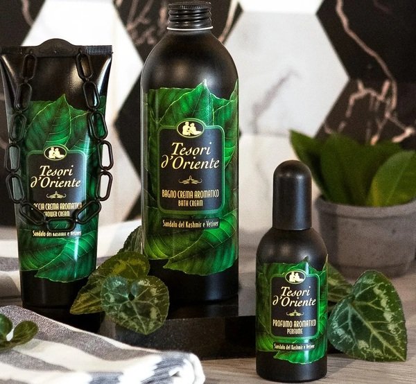 Создайте атмосферу релакса и восстановите силы с парфюмированным крем-гелем для ванны итальянского бренда Tesori d`Oriente! Он нежно очищает, питает и тонизирует кожу, поддерживает гидробаланс. Аромат принадлежит к группе древесных. В начале звучат аккорды пряного и свежего имбиря и яркого бергамота. Сердце раскрывается насыщенным ванильно-сливочным бензоином, прохладным, освежающим зеленым чаем и элегантной розой. Шлейф соткан из гармоничного сочетания амбрового сандала, многогранного кашемирового дерева и дымного, сдержанного ветивера. Нежная и освежающая композиция бодрит и дарит прилив сил и энергии.