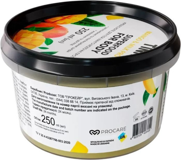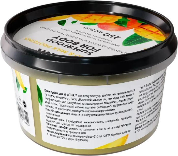 Крем-суфле Tink Superfood For Body Mango & Milk Proteins — сверхэффективное средство для увлажнения, ощущения комфорта и здорового вида кожи. Крем имеет мягкую нежную консистенцию, легко наносится и быстро впитывается. Средство обеспечивает бережный уход, увлажняет, смягчает, питает и восстанавливает кожу.
