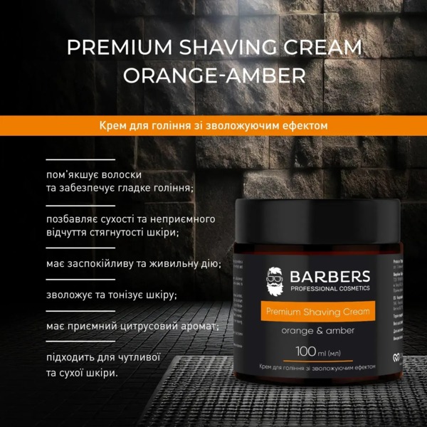 - Крем для бритья с увлажняющим эффектом Barbers Orange-Amber 100 мл