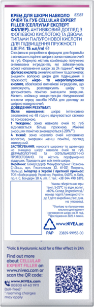 - Крем для зоны вокруг глаз Nivea Hyaluron Cellular Filler с гиалуроновой кислотой 15мл