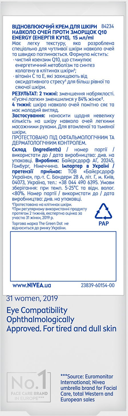 Крем для зоны вокруг глаз Nivea Q10 Energy Против морщин 15 мл
