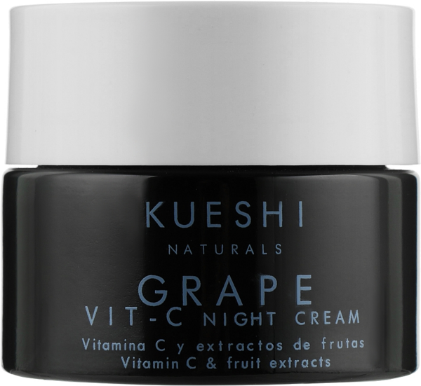 Kueshi - это бренд, который стремится обеспечивать качество в каждом своем продукте. Формулы Kueshi сочетают в себе высококачественные активные ингредиенты с натуральными и органическими компонентами, которые благодаря своей эффективности помогают коже достичь оптимальных результатов. Naturals - это линия, которая делает ставку на инновации и развитие, создание естественных формул, экологичность и социальную ответственность. Этот новый ассортимент натуральной косметики создан на основе фруктов, которые использовались сотни лет, благодаря их большому количеству и разнообразию свойств. И теперь, с Kueshi Naturals, мы можем заботиться о нашей коже как внутри, так и снаружи. Ночной крем для лица с виноградом и витамином с grape super fruit & vit C night cream имеет мощную антиоксидантную формулу благодаря содержанию чистого витамина С и масла виноградных косточек. Помогает увлажнять, предотвращать и защищать кожу лица от старения, глубоко питая ее в течение ночи. Комбинация с гиалуроновой кислотой обеспечивает антивозрастные свойства, необходимые вашей коже, повышение эластичности и упругости, исправление недостатков и восстановление утраченного сияния.