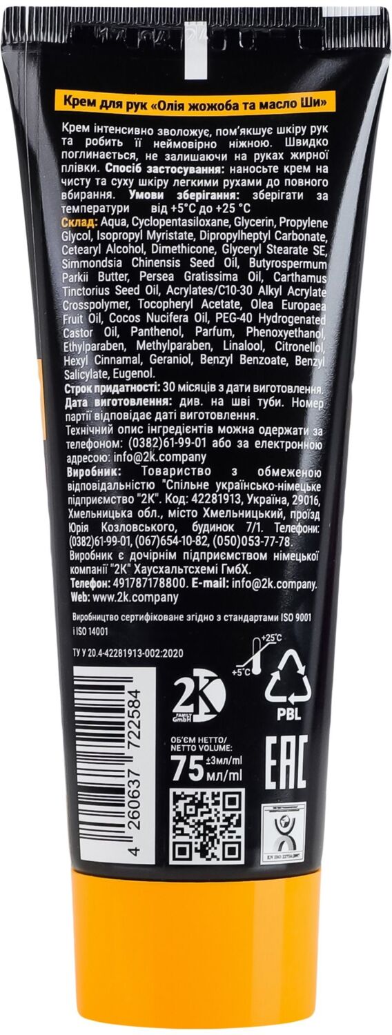 Крем интенсивно увлажняет, смягчает кожу рук и делает ее невероятно нежной. Быстро впитывается, не оставляя на руках жирной пленки.