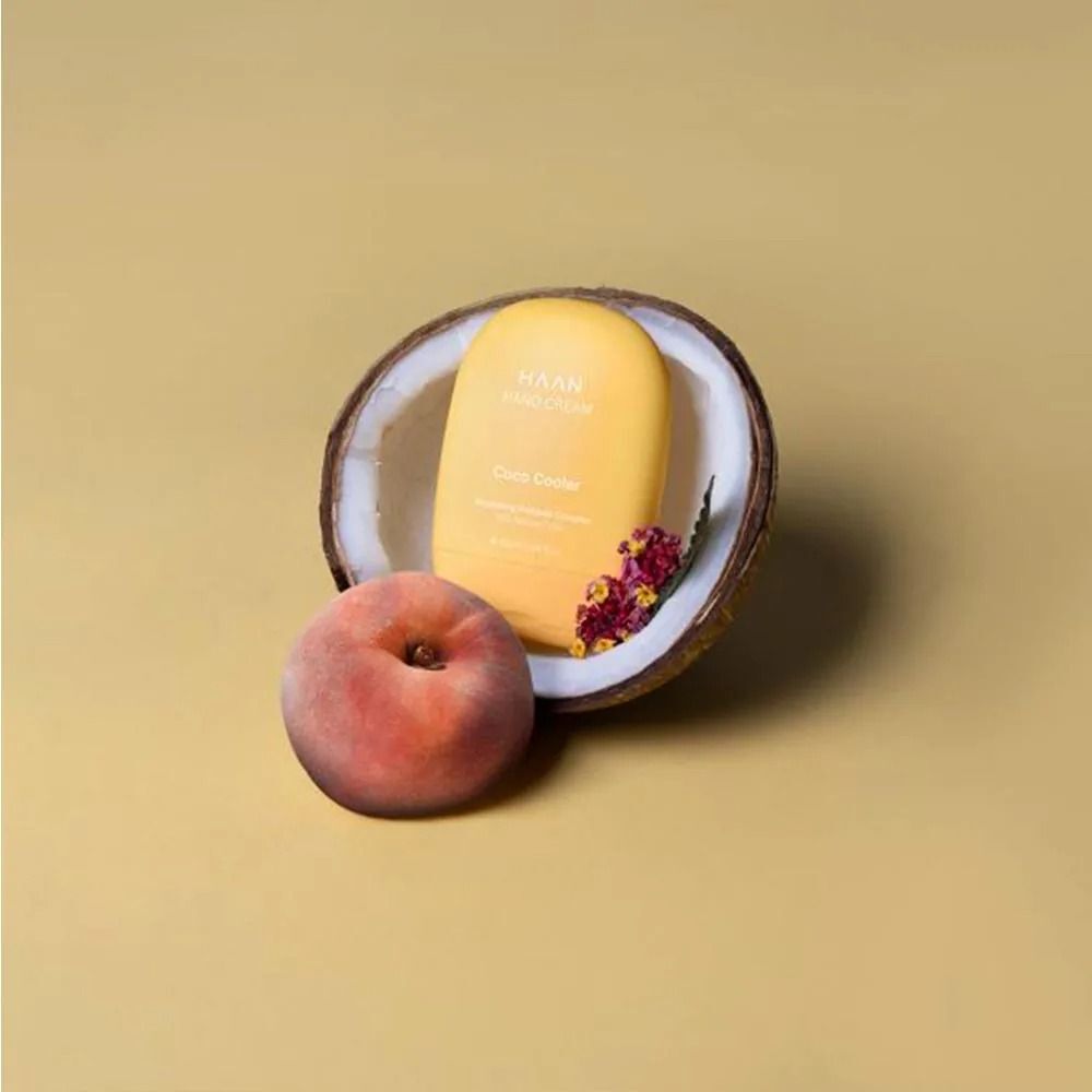 Сливочный кокос переплетается с нежным и сочным белым персиком — аромат eco-friendly крема HAAN, который на 96 % состоит из компонентов натурального происхождения, питает кожу рук суперфудами и заботится о ее красоте.