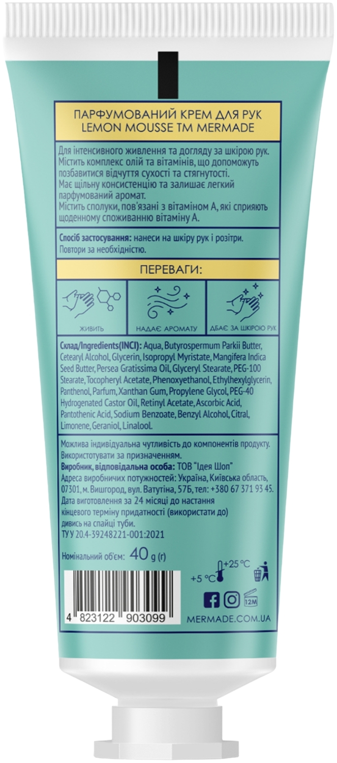 - Парфюмированный крем для рук Mermade Lemon Mousse 40 г