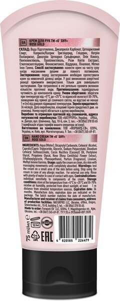 Крем для рук O'shy Rose gold 75мл