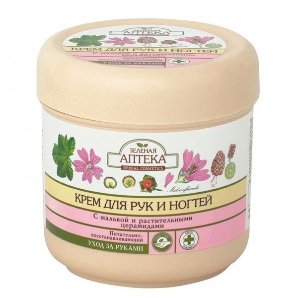 - Крем для рук и ногтей Зеленая аптека Питательно-восстанавливающий с мальвой и церамидами 300 мл