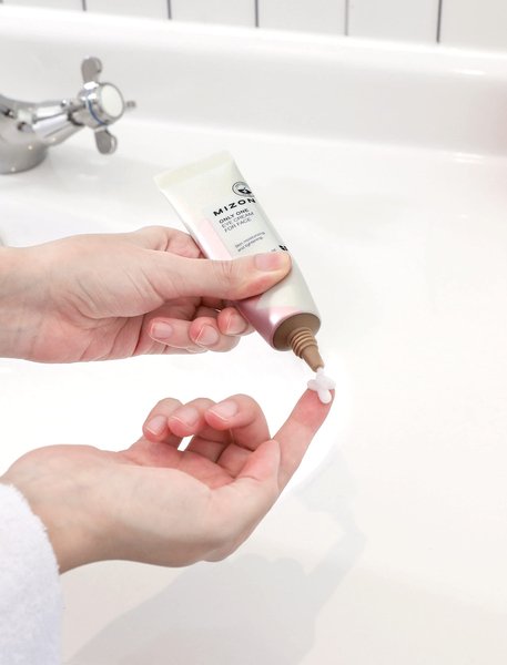 Нанести крем на очищенную кожу лица и под глазами.
