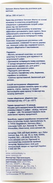 Крем от растяжек Sanosan Mama для беременных 200мл