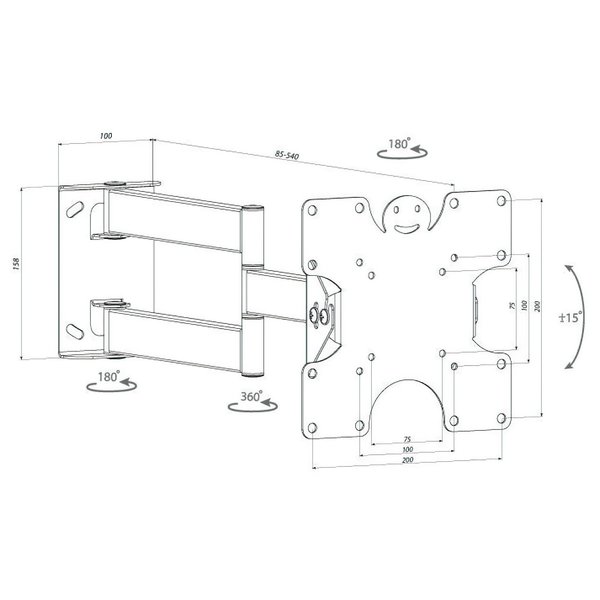 | Вид кронштейна | Наклонно-поворотный, Наклонный, Поворотный |