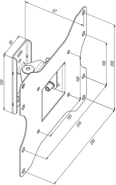 Кронштейн подходит для плазменных, LCD, LED телевизоров и мониторов с диагональю 19-43 дюйма и весом до 25 кг. Поддерживаемый стандарт VESA: от 100×100 мм до 200×200 мм.