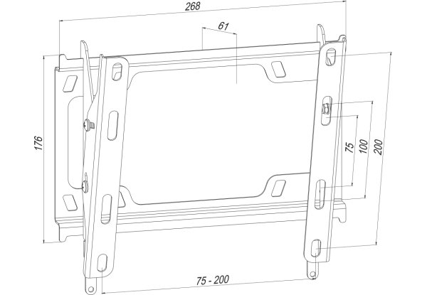 Прочная конструкция стального настенного кронштейна Simpler 28EN. Кронштейн подходит для плазменных, LCD, LED телевизоров и мониторов с диагональю 22 – 43 дюйма. Максимальный размер VESA 200 x 200 мм. Позволяет наклонять монитор на 15 градусов. Расстояние от стены: 61 мм. В комплекте монтажный набор, подходящий для большинства современных телевизоров.